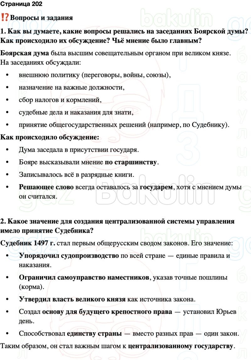 1. Как вы думаете, какие вопросы решались на заседаниях Боярской думы? Как происходило их обсуждение? Чьё мнение было главным?