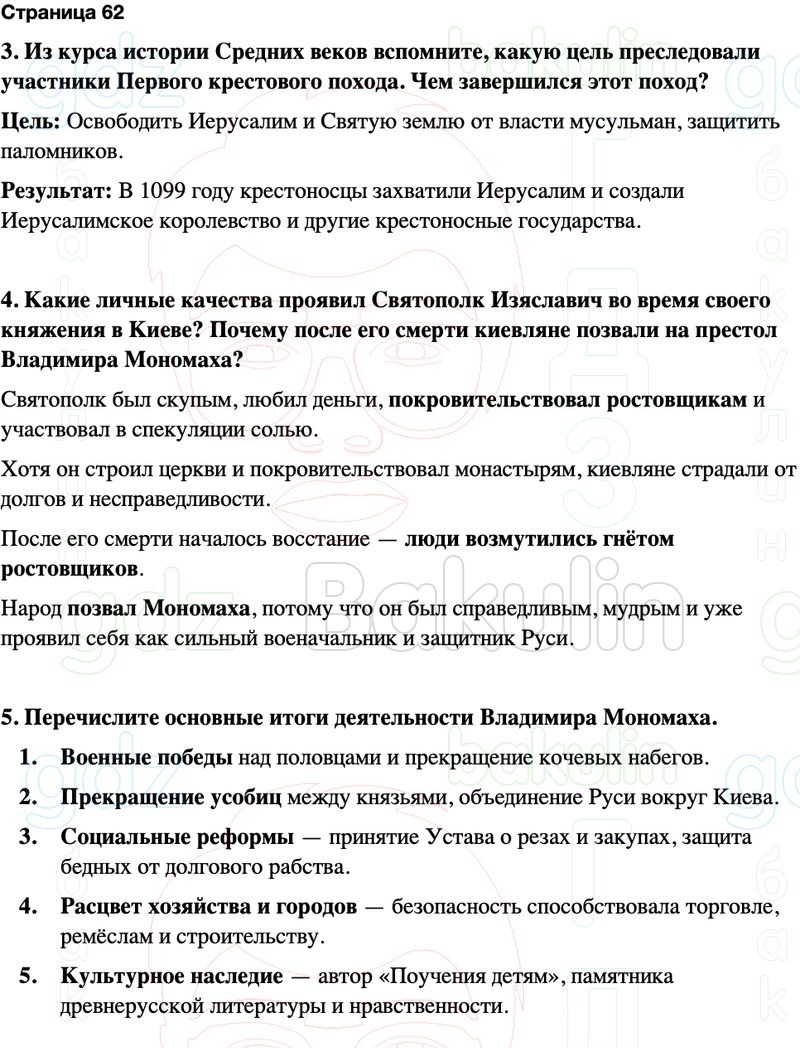 5. Перечислите основные итоги деятельности Владимира Мономаха.