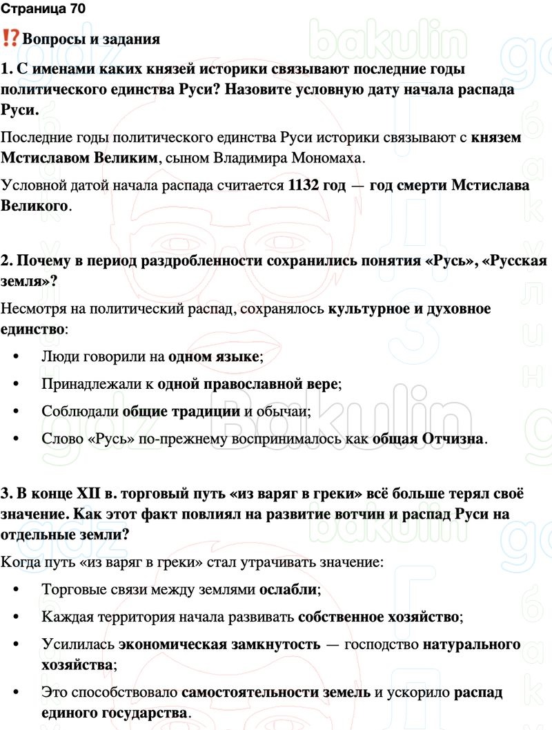 3. В конце XII в. торговый путь «из варяг в греки» всё больше терял своё значение. Как этот факт повлиял на развитие вотчин и распад Руси на отдельные земли?