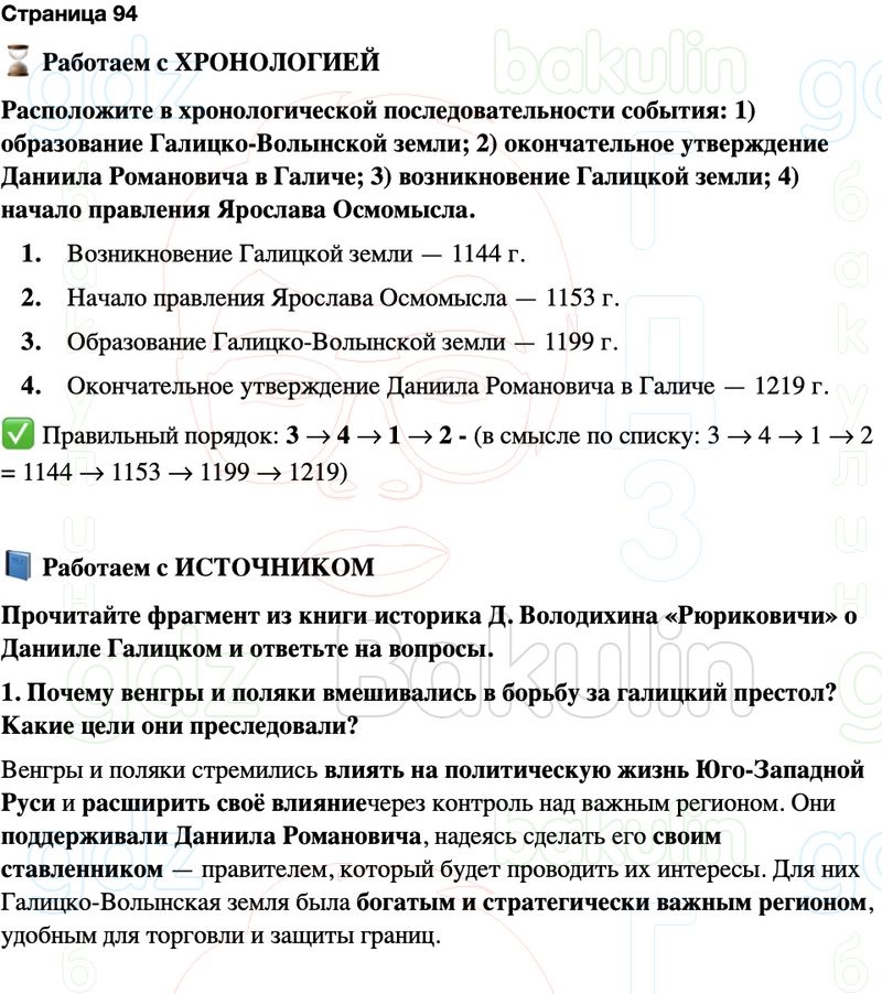 1. Почему венгры и поляки вмешивались в борьбу за галицкий престол? Какие цели они преследовали?