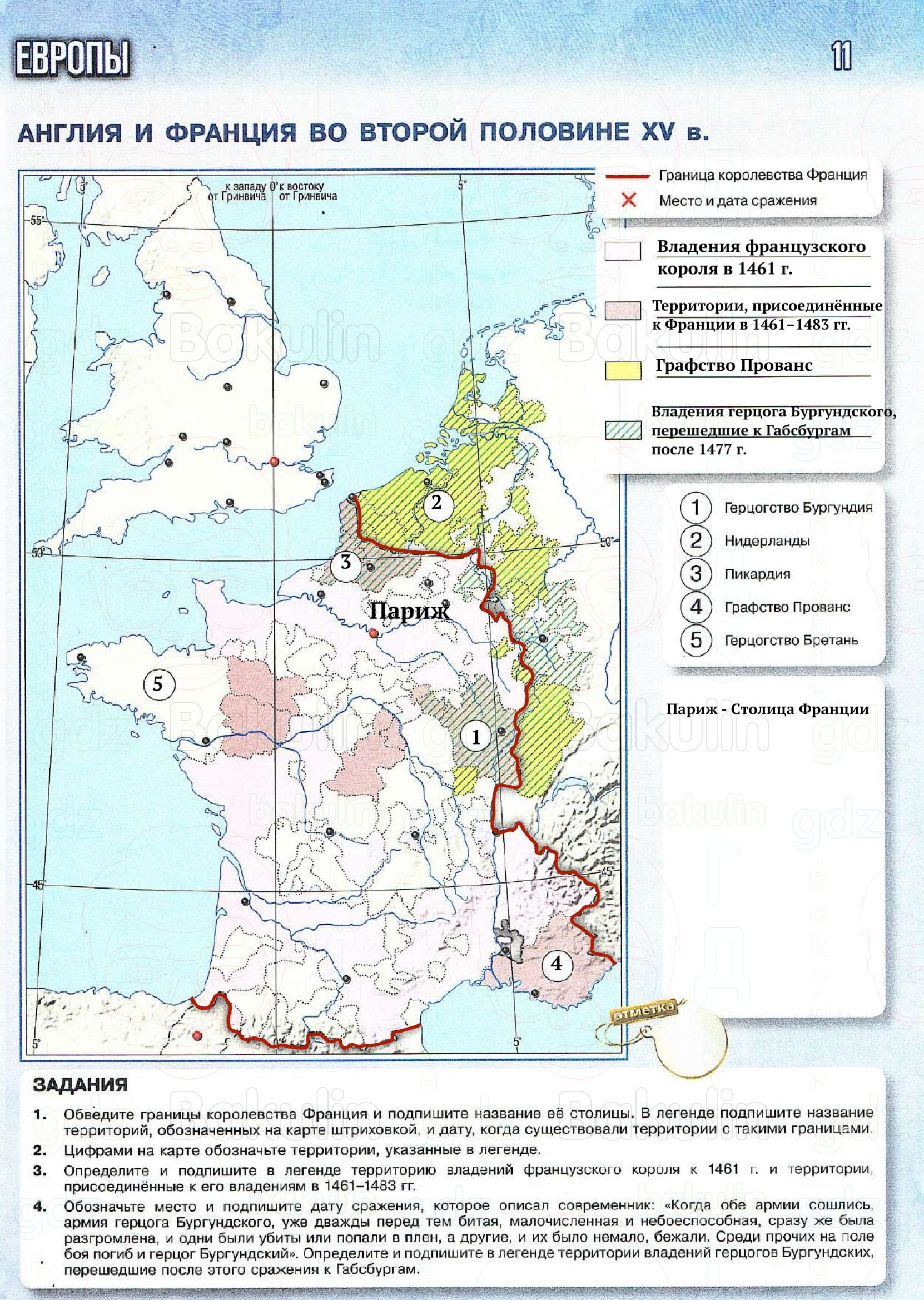 На карте выдели территорию Французского королевства к концу Столетней войны (после 1453 г.) — почти вся территория современной Франции.