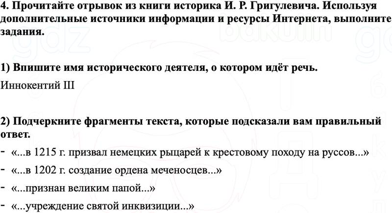 4. Прочитайте отрывок из книги историка И. Р. Григулевича. Используя дополнительные источники информации и ресурсы Интернета, выполните задания.