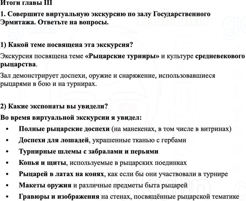 1. Совершите виртуальную экскурсию по залу Государственного Эрмитажа. Ответьте на вопросы.