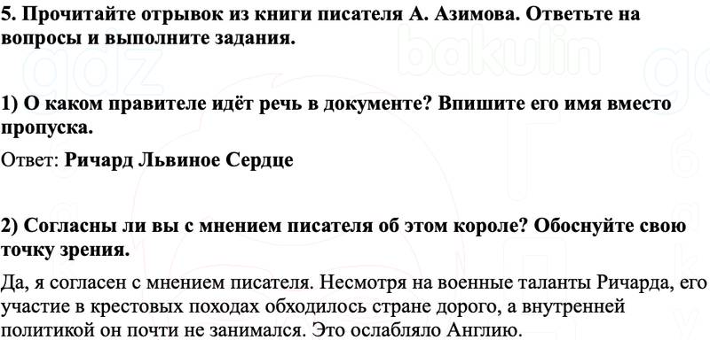 5. Прочитайте отрывок из книги писателя А. Азимова. Ответьте на вопросы и выполните задания.