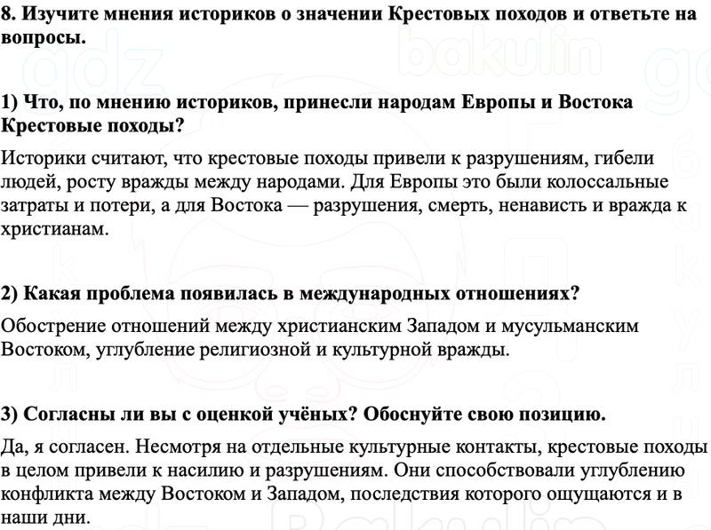 8. Изучите мнения историков о значении Крестовых походов и ответьте на вопросы.
