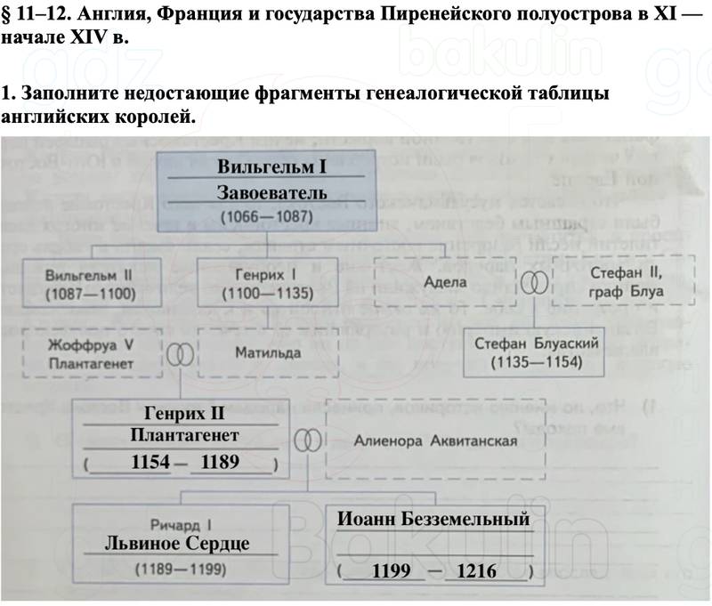 § 11–12. Англия, Франция и государства Пиренейского полуострова в XI — начале XIV в. / 1