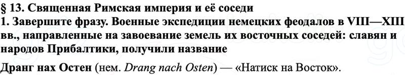 1. Завершите фразу. Военные экспедиции немецких феодалов в VIII—XIII вв., направленные на завоевание земель их восточных соседей: славян и народов Прибалтики, получили название