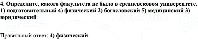 4. Определите, какого факультета не было в средневековом университете. 1) подготовительный 4) физический 2) богословский 5) медицинский 3) юридический