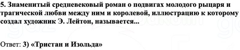 5. Знаменитый средневековый роман о подвигах молодого рыцаря и трагической любви между ним и королевой, иллюстрацию к которому создал художник Э. Лейтон, называется...