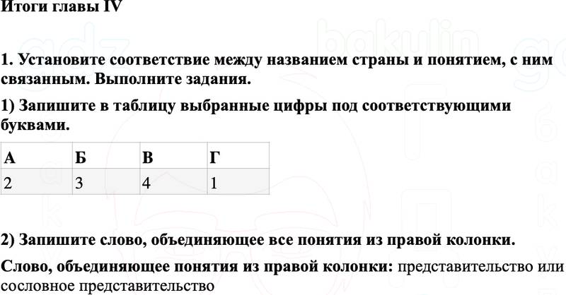 1. Установите соответствие между названием страны и понятием, с ним связанным. Выполните задания.