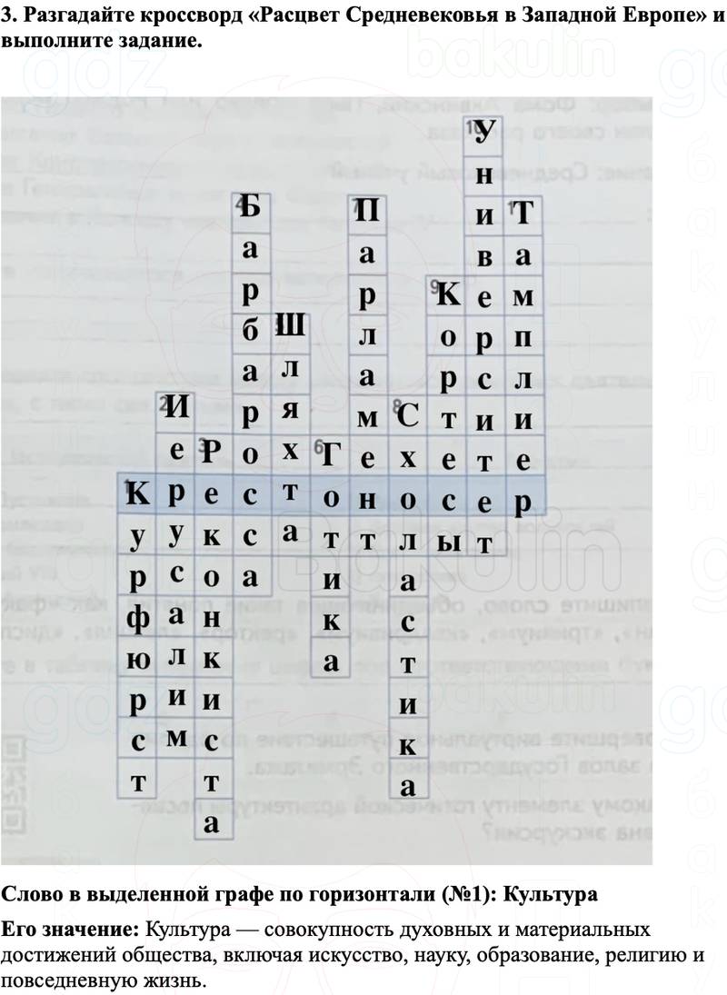 3. Разгадайте кроссворд «Расцвет Средневековья в Западной Европе» и выполните задание.