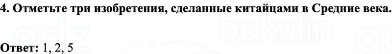 4. Отметьте три изобретения, сделанные китайцами в Средние века.