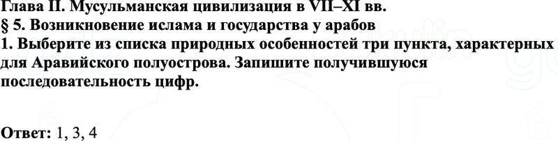 1. Выберите из списка природных особенностей три пункта, характерных для Аравийского полуострова. Запишите получившуюся последовательность цифр.