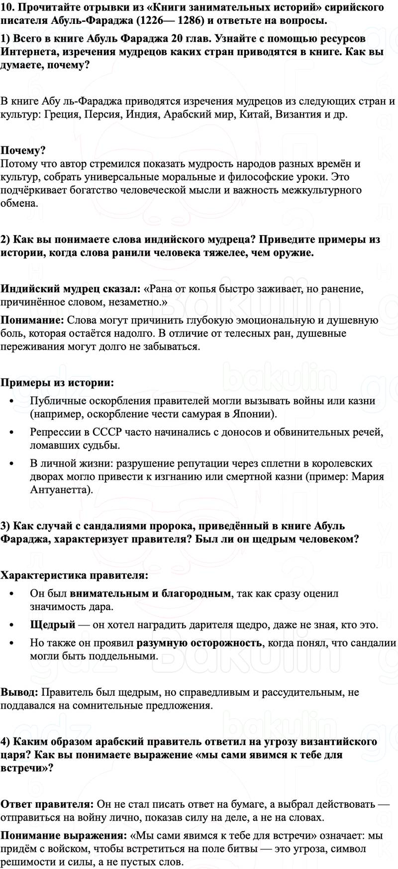 10. Прочитайте отрывки из «Книги занимательных историй» сирийского писателя Абуль-Фараджа (1226— 1286) и ответьте на вопросы.