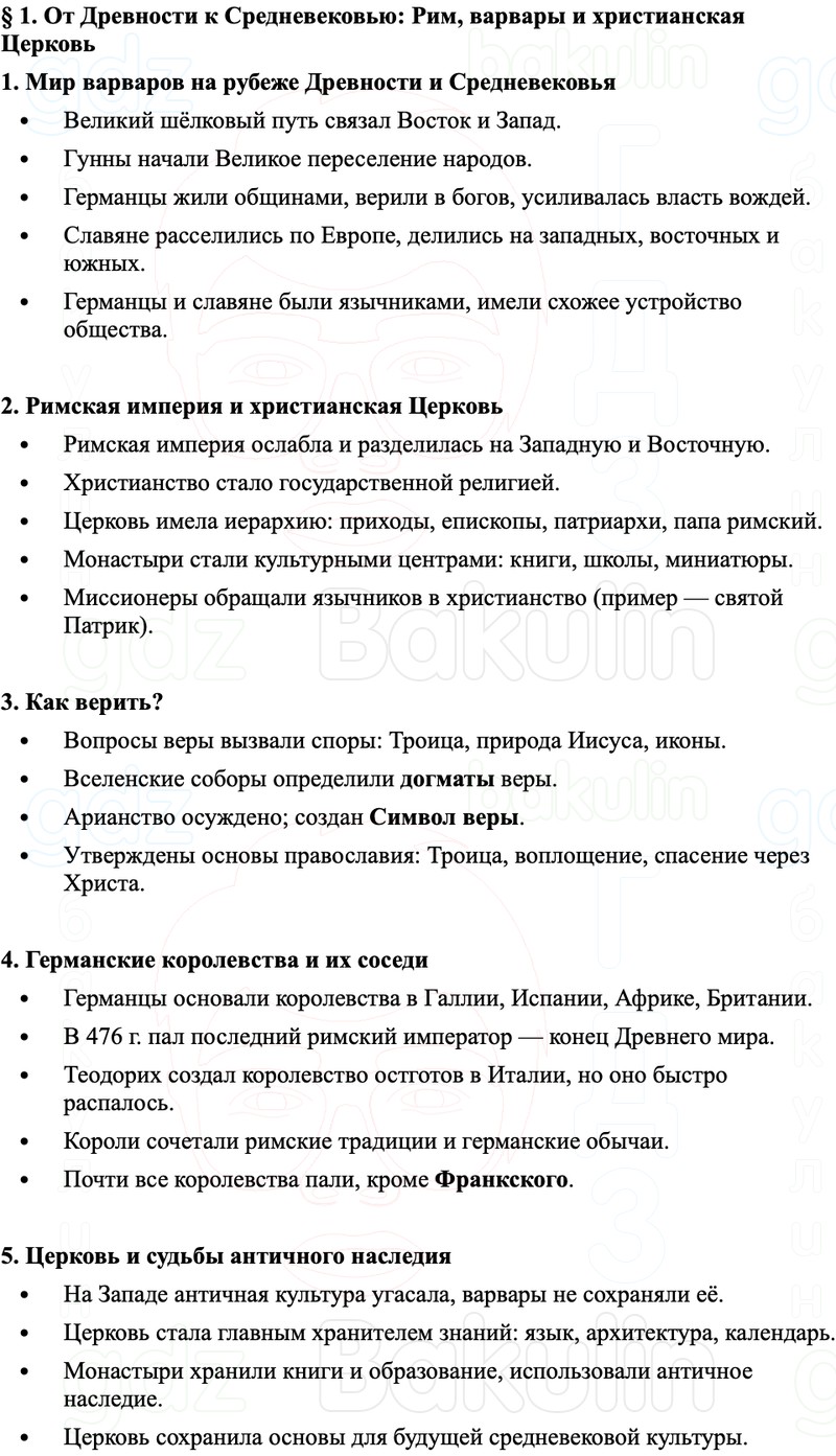 Краткое содержание и пересказ Параграф 1 От Древности к Средневековью: Рим, варвары и христианская Церковь
