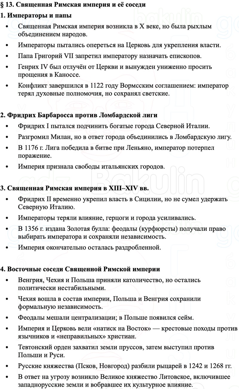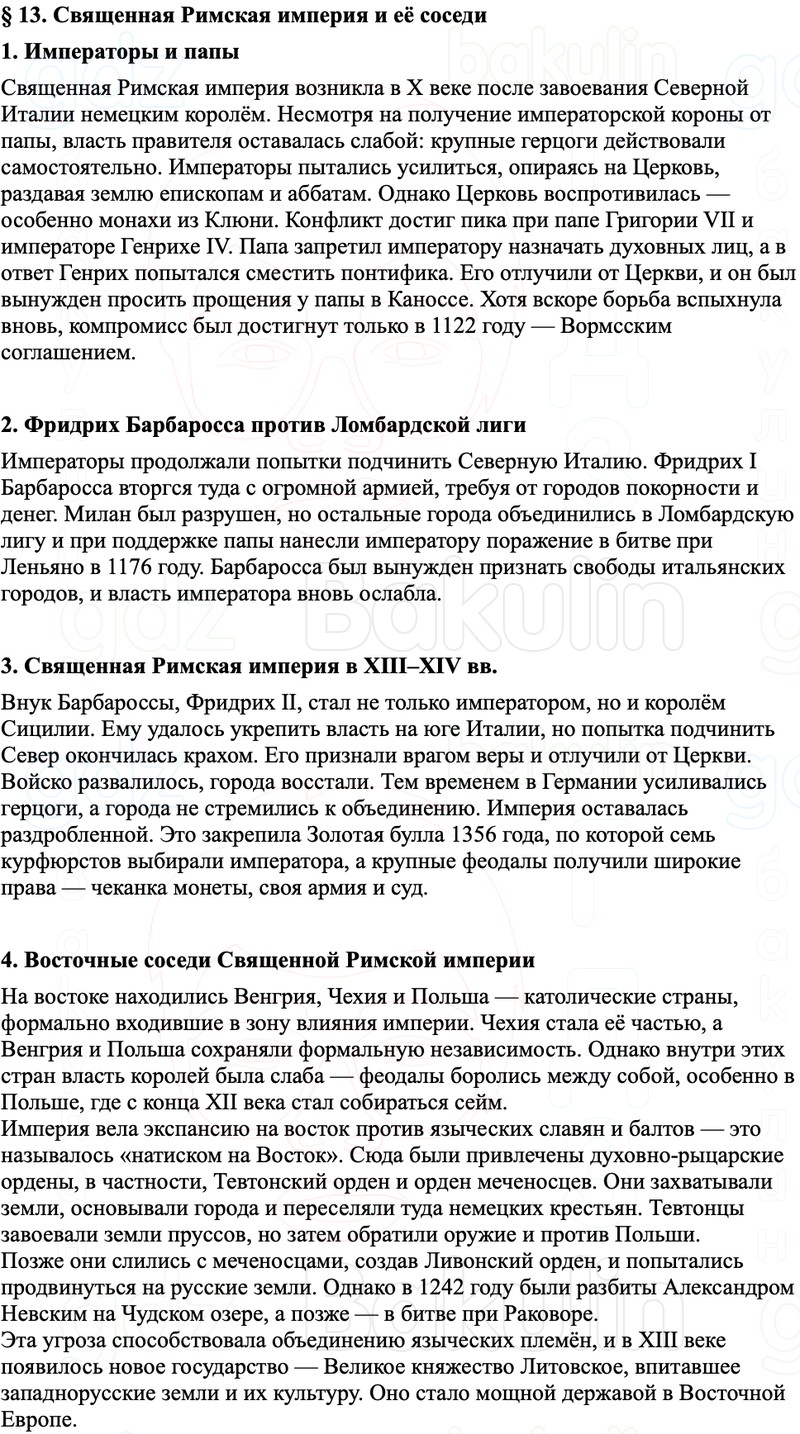 Краткое содержание и пересказ Параграф 13 Священная Римская империя и её соседи
