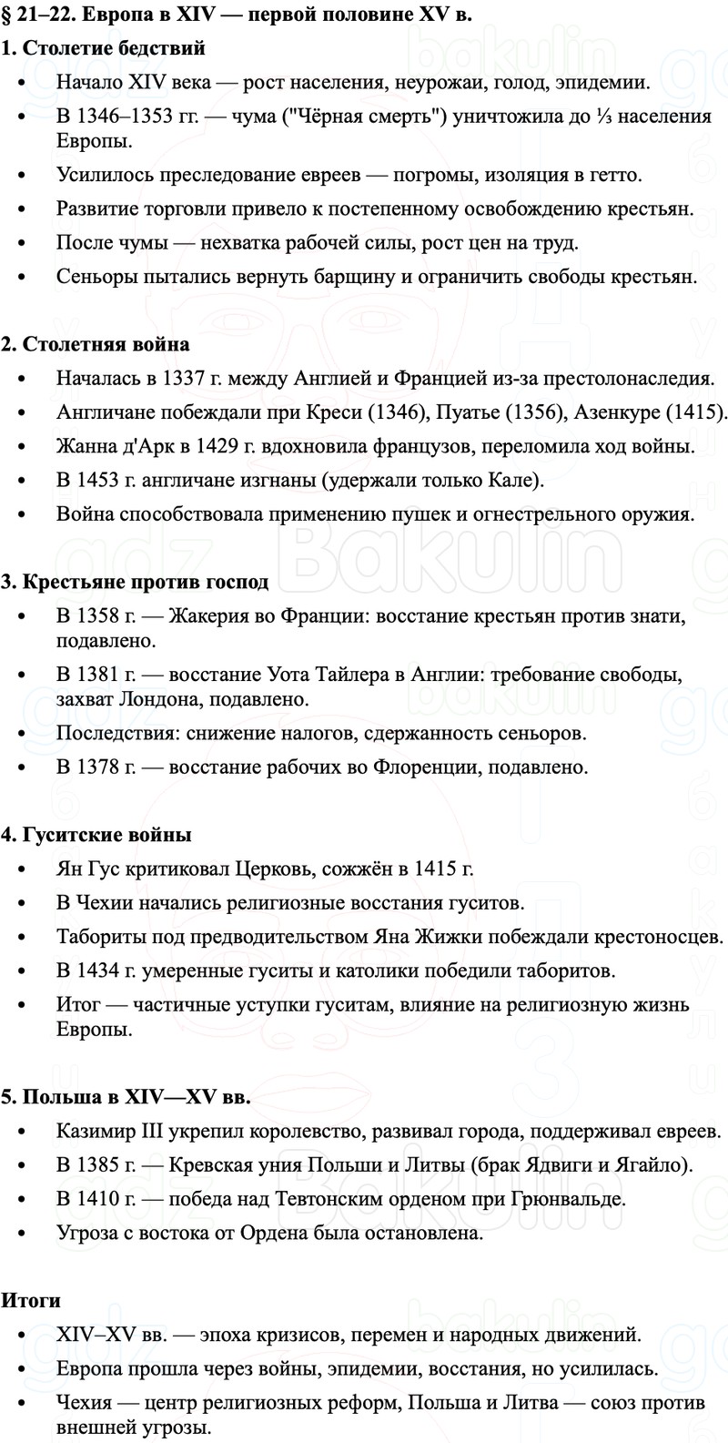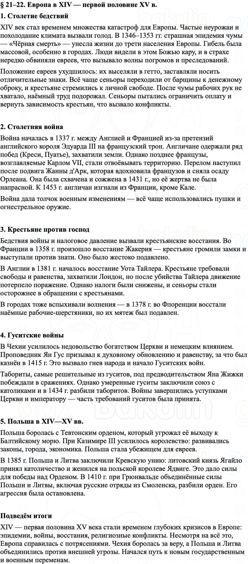 Краткое содержание и пересказ Параграф 21–22 Европа в XIV — первой половине XV в.