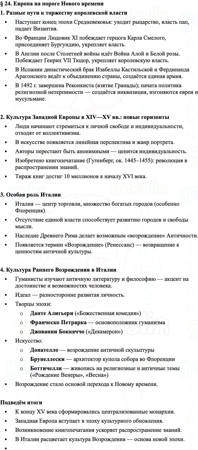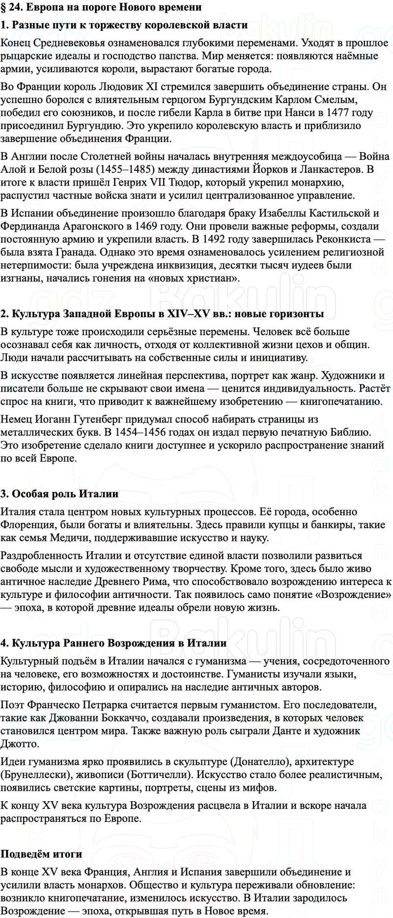 Краткое содержание и пересказ Параграф 24 Европа на пороге Нового времени
