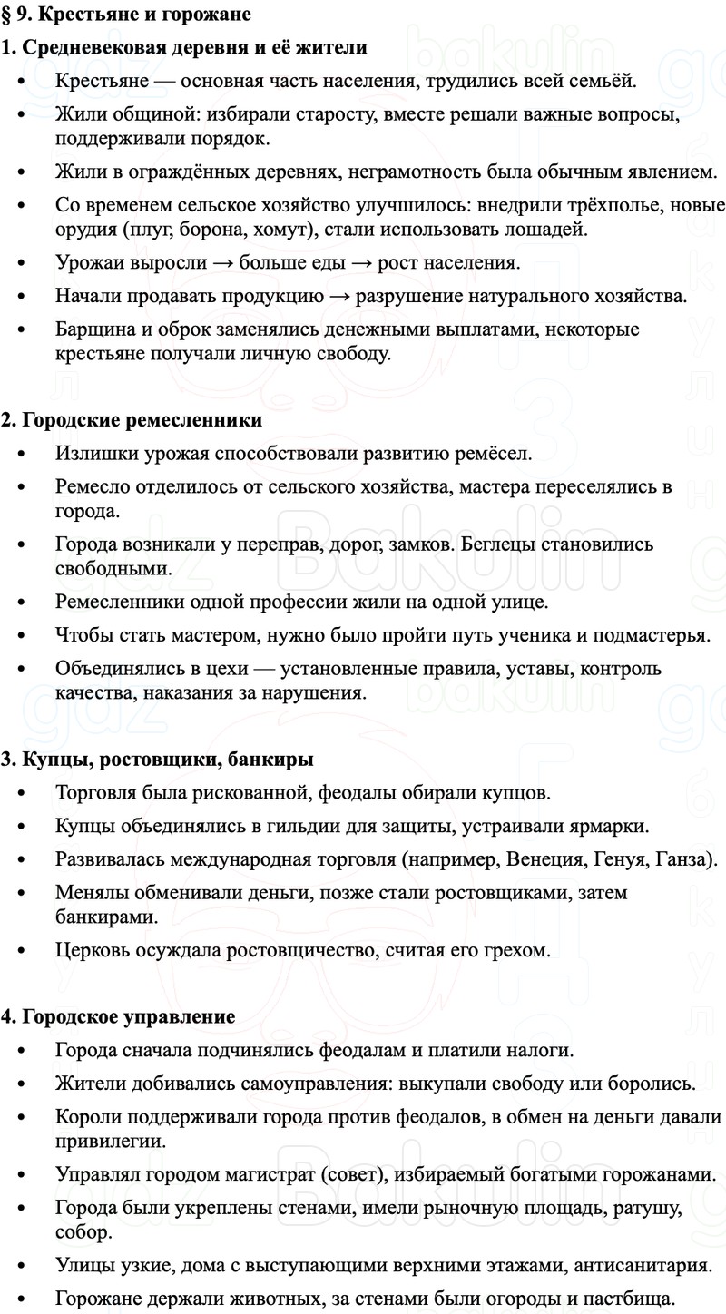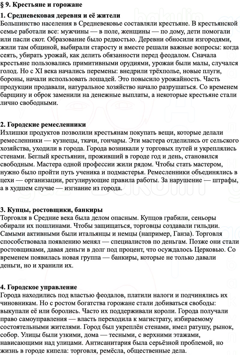 Краткое содержание и пересказ Параграф 9 Крестьяне и горожане