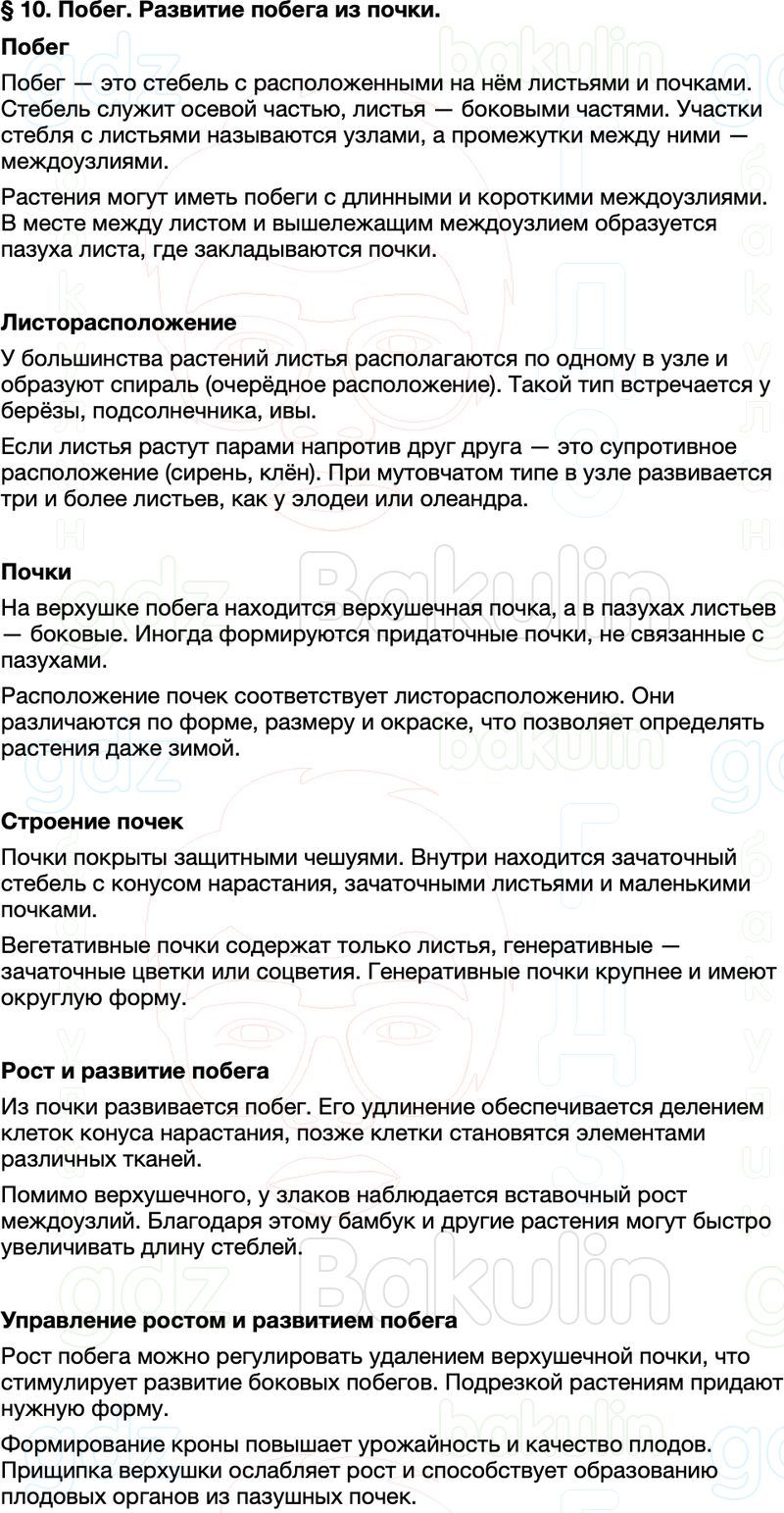 Краткое содержание пересказ Параграф 10 Побег Развитие побега из почки