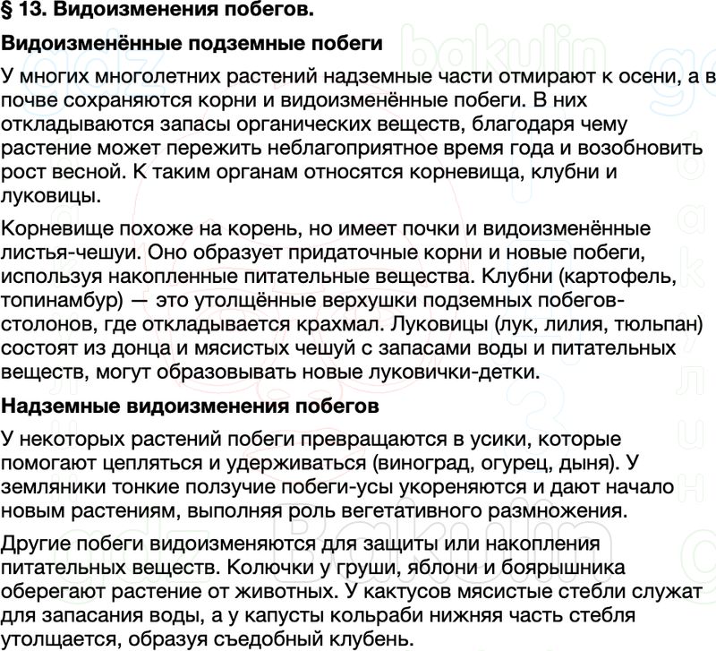 Краткое содержание пересказ Параграф 13 Видоизменения побегов