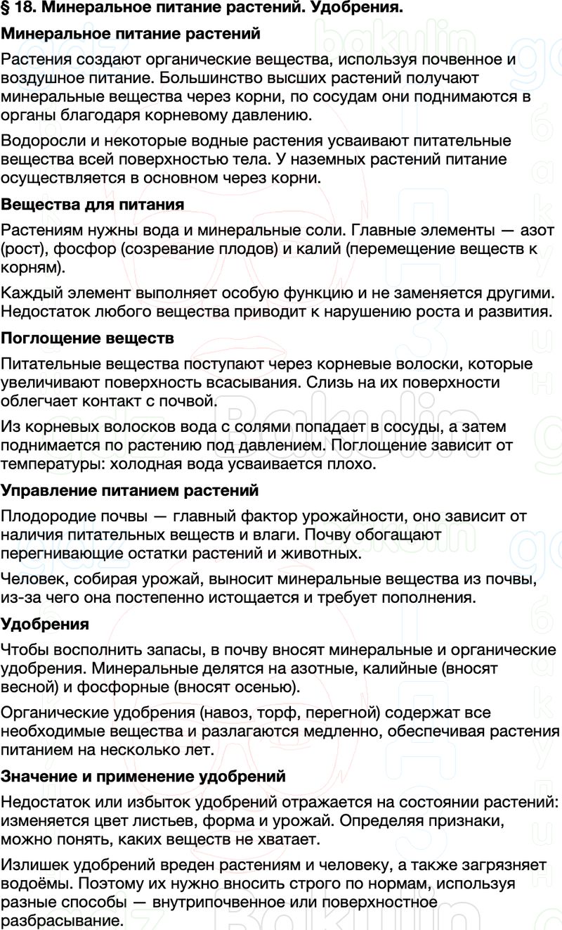 Краткое содержание пересказ Параграф 18 Минеральное питание растений Удобрения
