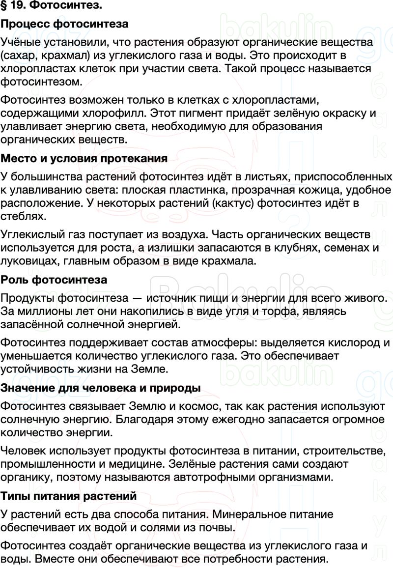 Краткое содержание пересказ Параграф 19 Фотосинтез