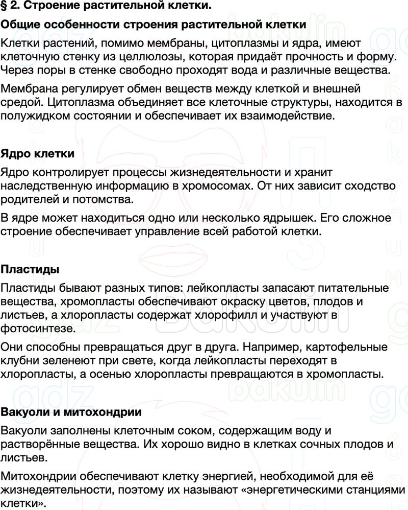 Краткое содержание пересказ Параграф 2 Строение растительной клетки