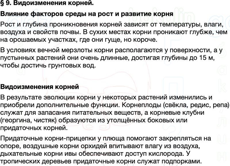 Краткое содержание пересказ Параграф 9 Видоизменения корней