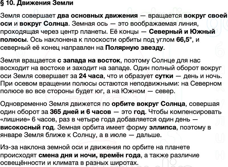 Краткое содержание Параграф 10. Движения Земли