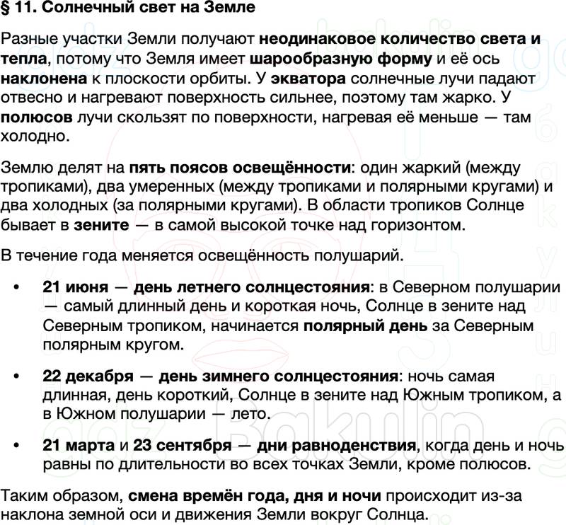 Краткое содержание Параграф 11. Солнечный свет на Земле
