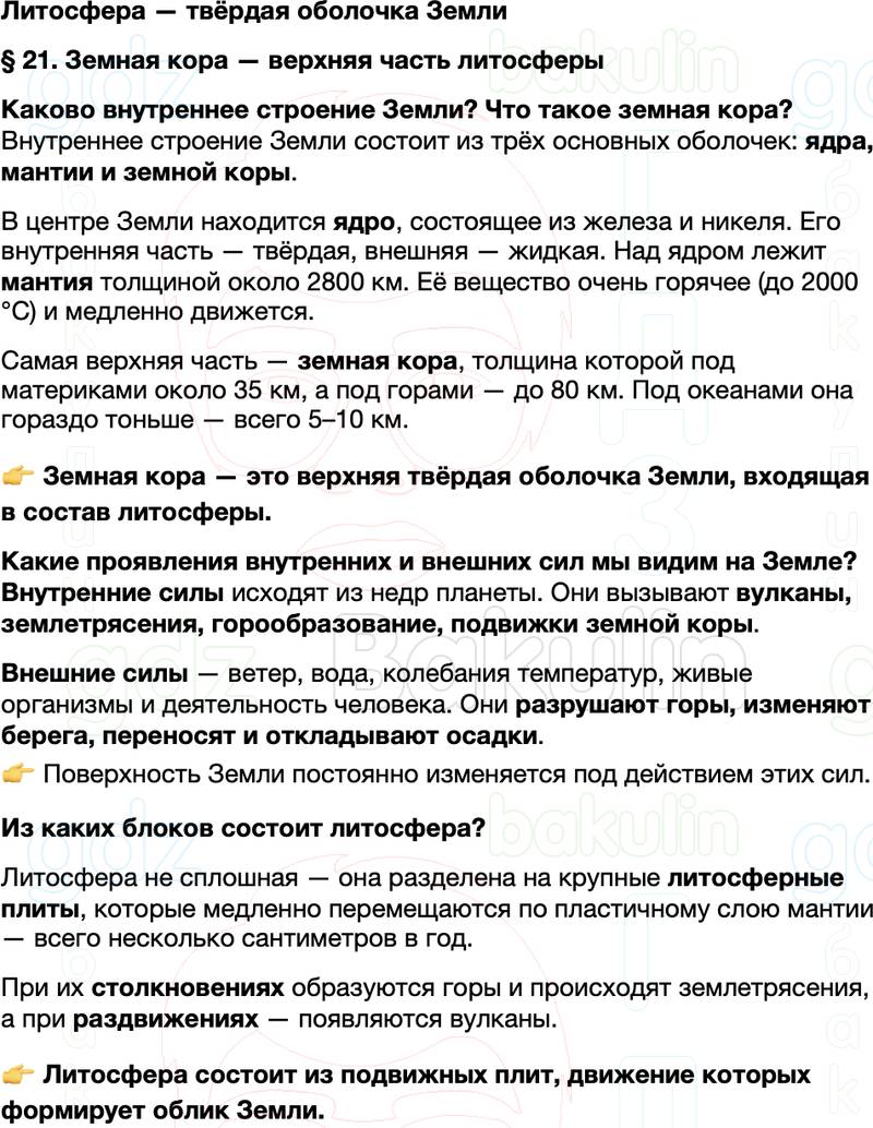 Краткое содержание Параграф 21. Земная кора — верхняя часть литосферы