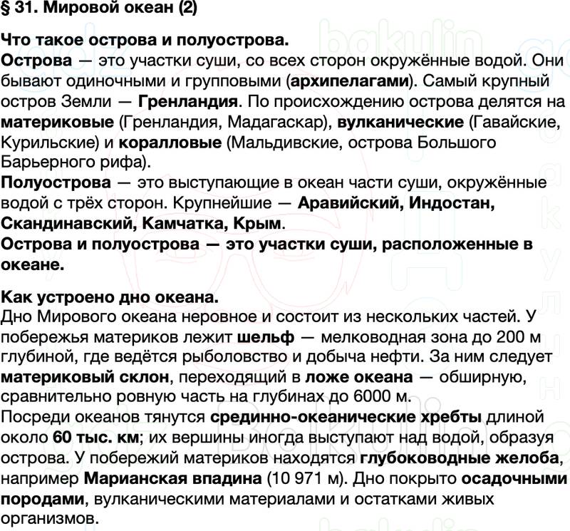 Правильный ответ к заданию Краткий пересказ содержание География 5-6 класс Алексеев Параграф, номер 31 бесплатно онлайн