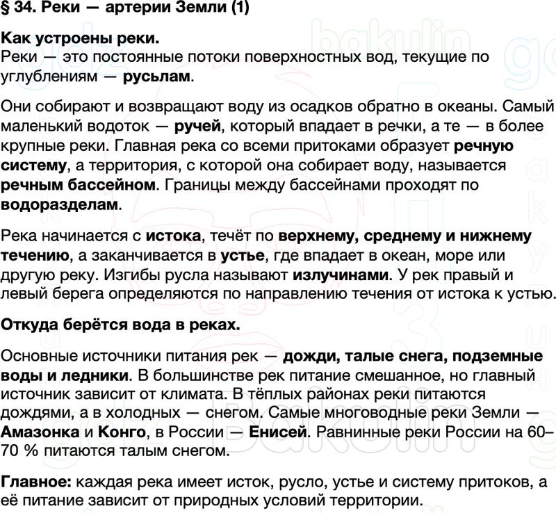 Краткое содержание Параграф 34. Реки — артерии Земли (1)