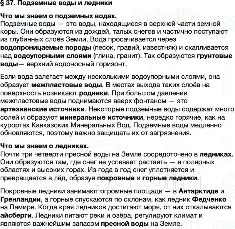 Краткое содержание Параграф 37. Подземные воды и ледники