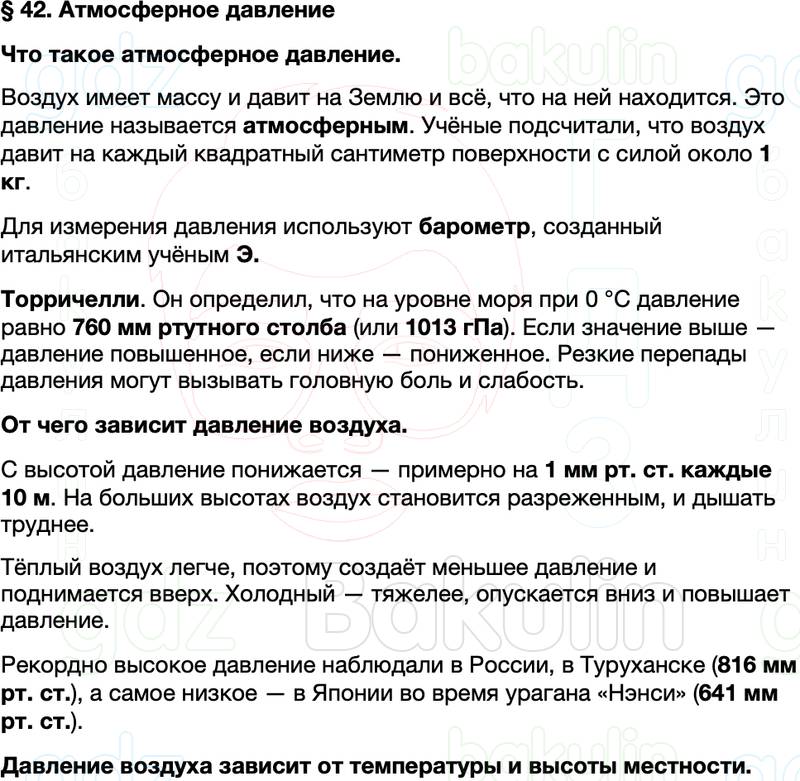Краткое содержание Параграф 42. Aтмосферное давление