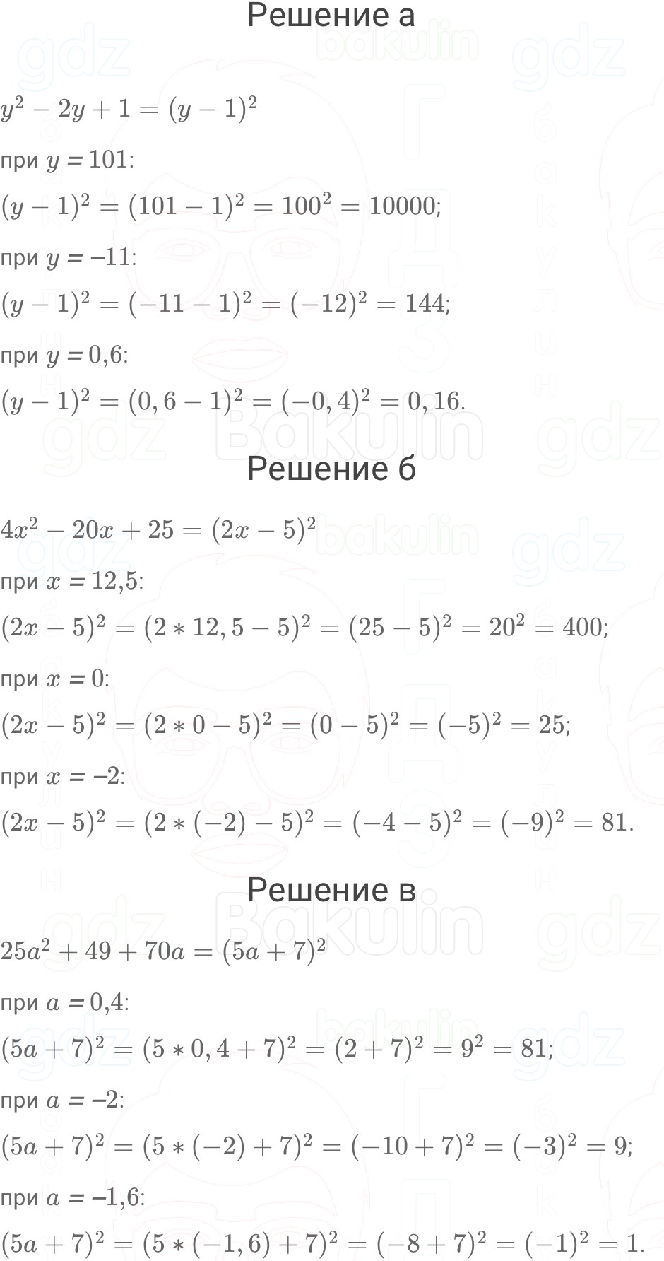 Правильный ответ к заданию ГДЗ учебник Алгебра 7 класс Макарычев, Миндюк, Нешков, под редакцией Теляковского 2024 ФГОС