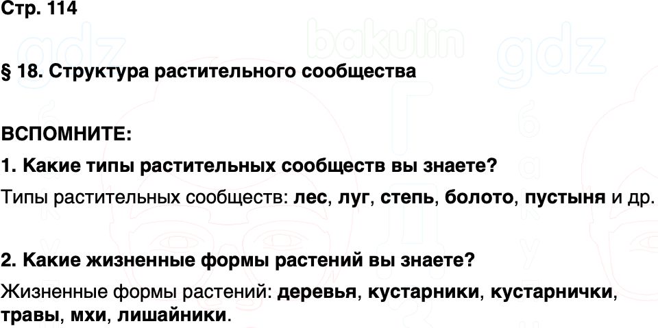 § 18. Структура растительного сообщества ВСПОМНИТЕ: 1. Какие типы растительных сообществ вы знаете?