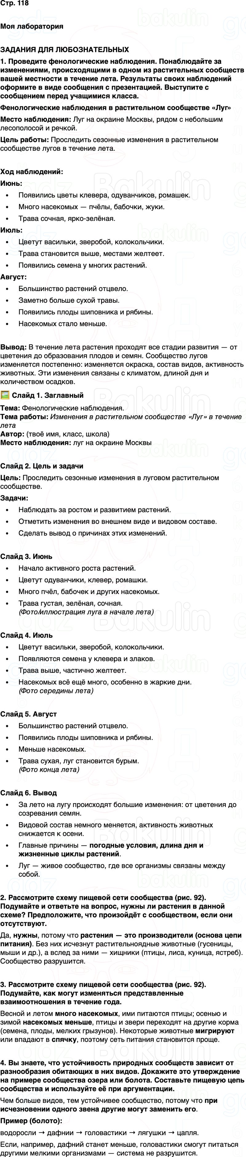 1. Проведите фенологические наблюдения. Понаблюдайте за изменениями, происходящими в одном из растительных сообществ вашей местности в течение лета. Результаты своих наблюдений оформите в виде сообщения с презентацией. Выступите с сообщением перед учащимися класса.