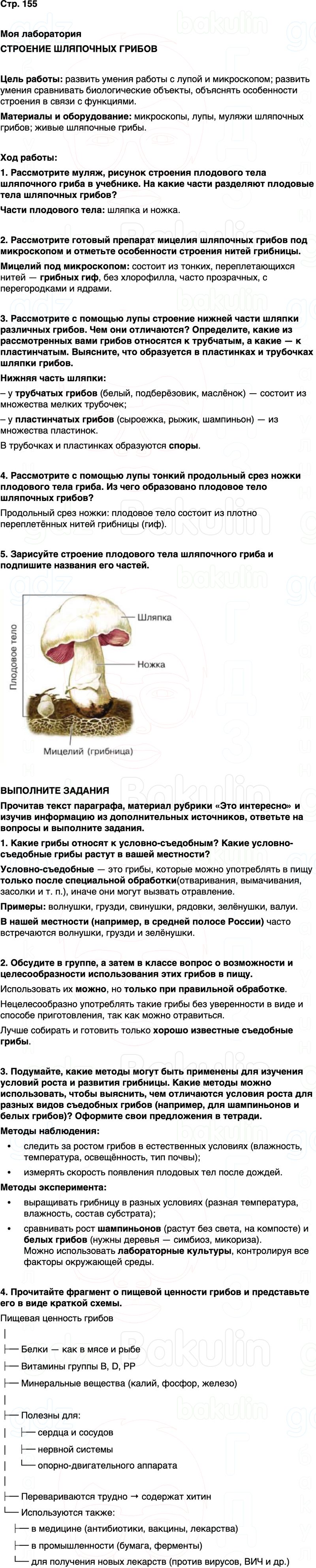 Материалы и оборудование: микроскопы, лупы, муляжи шляпочных грибов; живые шляпочные грибы.