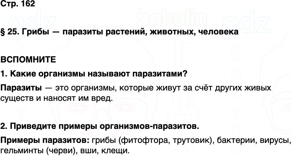 ВСПОМНИТЕ 1. Какие организмы называют паразитами?
