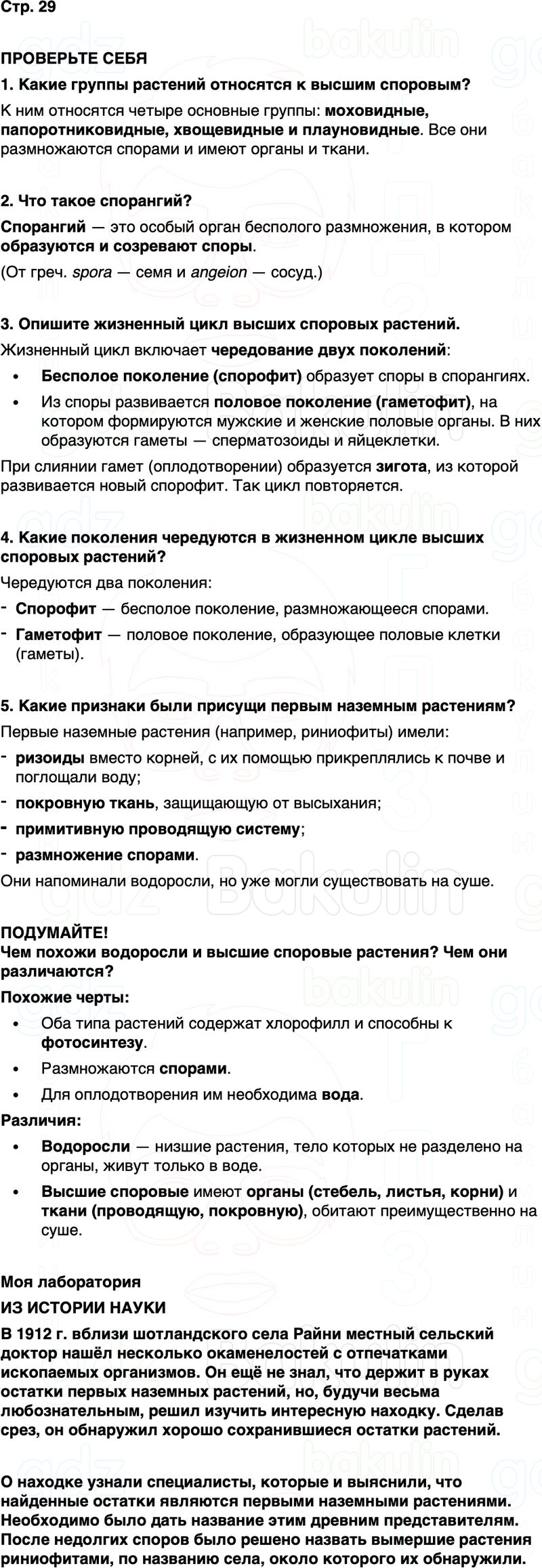ПОДУМАЙТЕ! Чем похожи водоросли и высшие споровые растения? Чем они различаются?