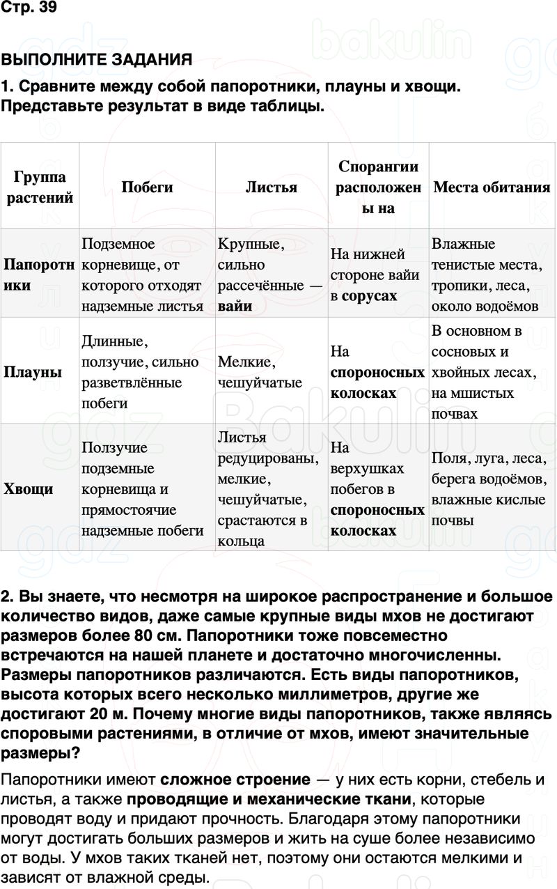1. Сравните между собой папоротники, плауны и хвощи. Представьте результат в виде таблицы.