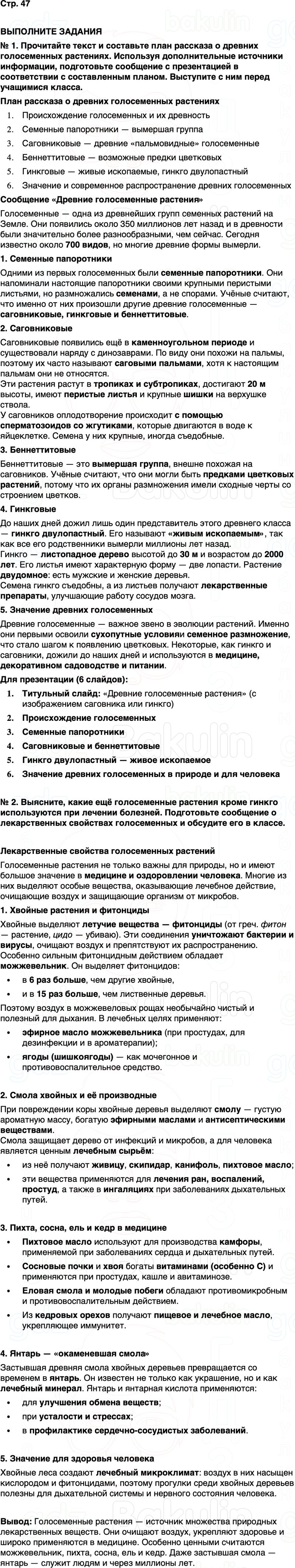 № 1. Прочитайте текст и составьте план рассказа о древних голосеменных растениях. Используя дополнительные источники информации, подготовьте сообщение с презентацией в соответствии с составленным планом. Выступите с ним перед учащимися класса.