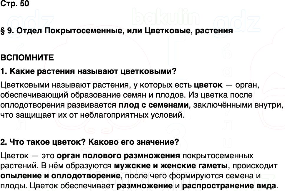 § 9. Отдел Покрытосеменные, или Цветковые, растения