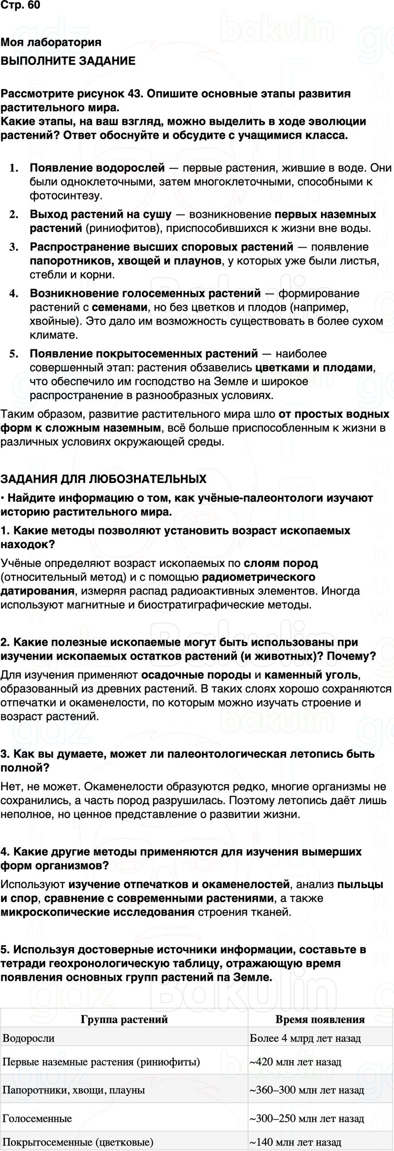Рассмотрите рисунок 43. Опишите основные этапы развития растительного мира.