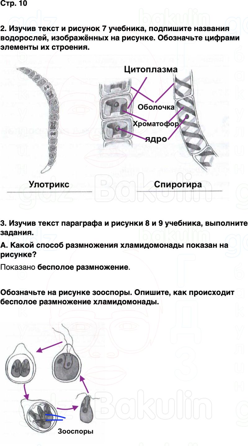2. Изучив текст и рисунок 7 учебника, подпишите названия водорослей, изображённых на рисунке. Обозначьте цифрами элементы их строения.