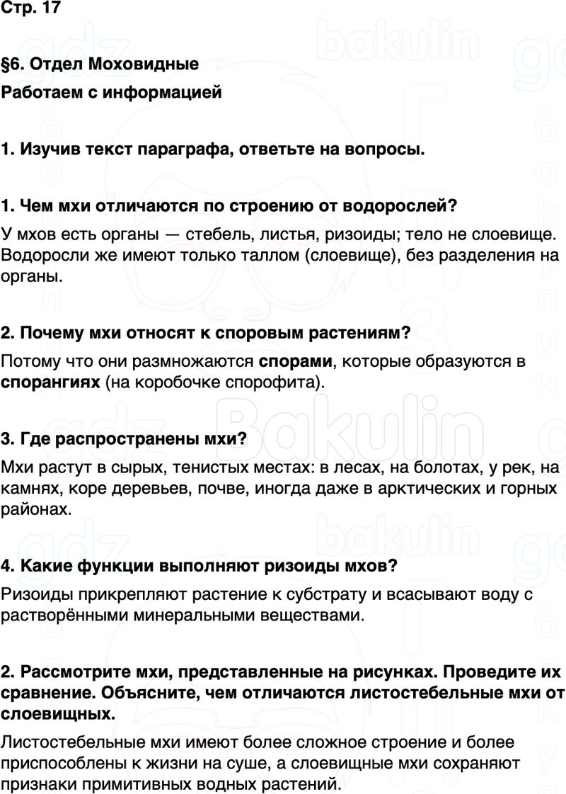 2. Рассмотрите мхи, представленные на рисунках. Проведите их сравнение. Объясните, чем отличаются листостебельные мхи от слоевищных.