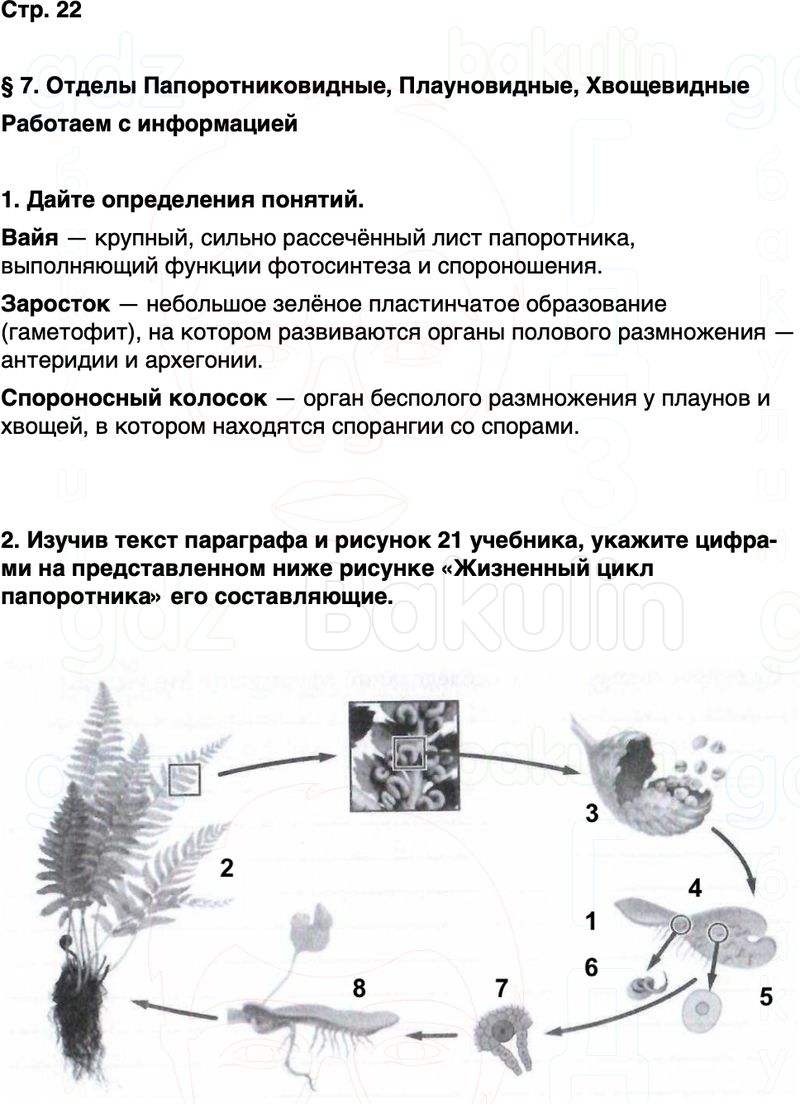 § 7. Отделы Папоротниковидные, Плауновидные, Хвощевидные