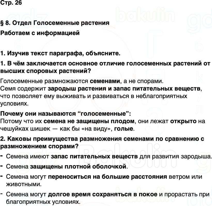 1. В чём заключается основное отличие голосеменных растений от высших споровых растений? Почему эти растения получили такое название?